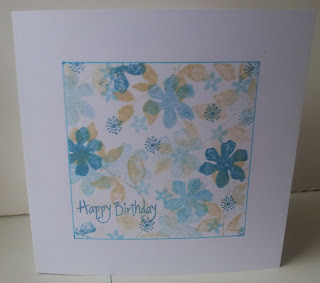 I've made this one layer card for Inkspirational Challenge #7. This week we have been provided with photo inspiration. I've stamped the flowers (Craftwork Cards) using chalk ink after masking off a section with low tack masking tape.