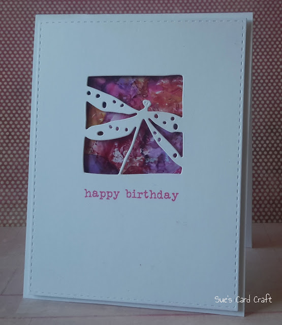 This week's theme at Less Is More is 'Bits Box' Item. I delved into my alcohol ink bits and pieces and found an acetate piece which I placed behind a die-cut dragonfly frame.