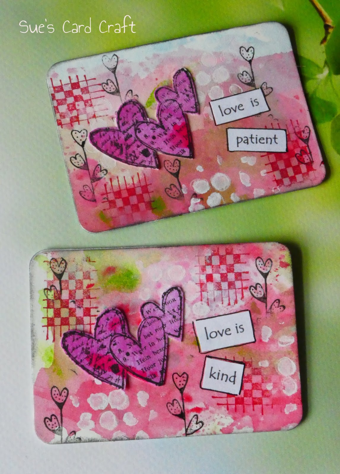To make my card, I inked a background with two colours of distress ink, placed a leaf stencil over the top, misted with water and then mopped up any excess moisture with paper towel.