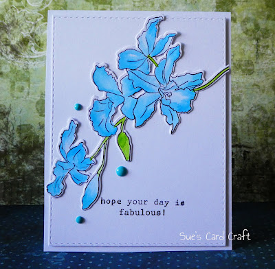 Another card using the lovely colours at CAS Colours and Sketches. The flowers were stamped and water coloured with distress inks.